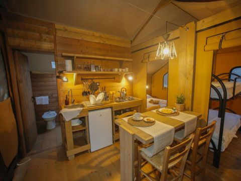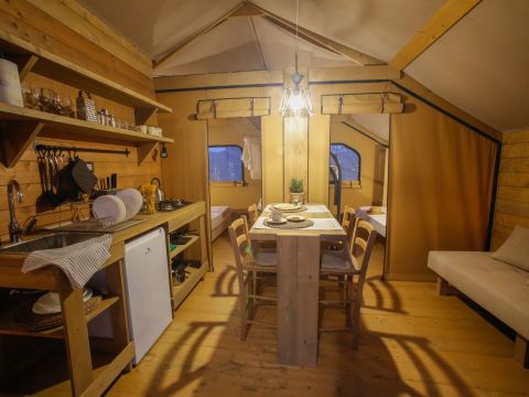 Das Trek-Zelt ist für alle geeignet, die Komfort und Entspannung suchen. Die Räume erlauben es Ihnen, die Umgebung in 360° zu genießen.