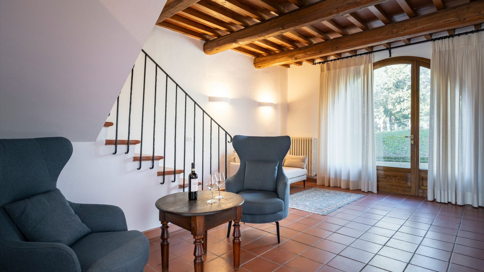 L'appartamento L'Olivo, all'interno dell'Agriturismo Casa Giani, è pensato per accogliere fino a quattro persone. Situato all'interno di un antico fienile finemente ristrutturato, l'appartamento di estende su due livelli. Al piano terra, un ampio soggiorno accoglie gli ospiti nell'atmosfera dello stile rurale toscano, impreziosita dall'esclusività di un confort moderno. La presenza del camino in muratura e mattoni offre un piacevole valore aggiunto durante le sere invernali, mentre il candore delle pareti dona eleganza e serenità. La cucina con arredi in legno massello è accessoriata di tutto il necessario per il vostro soggiorno nel borgo. Al piano superiore, 1 camera matrimoniale e 1 camera con letti singoli uniscono comodità ed estetica, riproponendo i dettagli delle antiche coloniche toscane. Un servizio igienico con finiture in marmo e un ambiente sottotetto completano i vani disponibili.