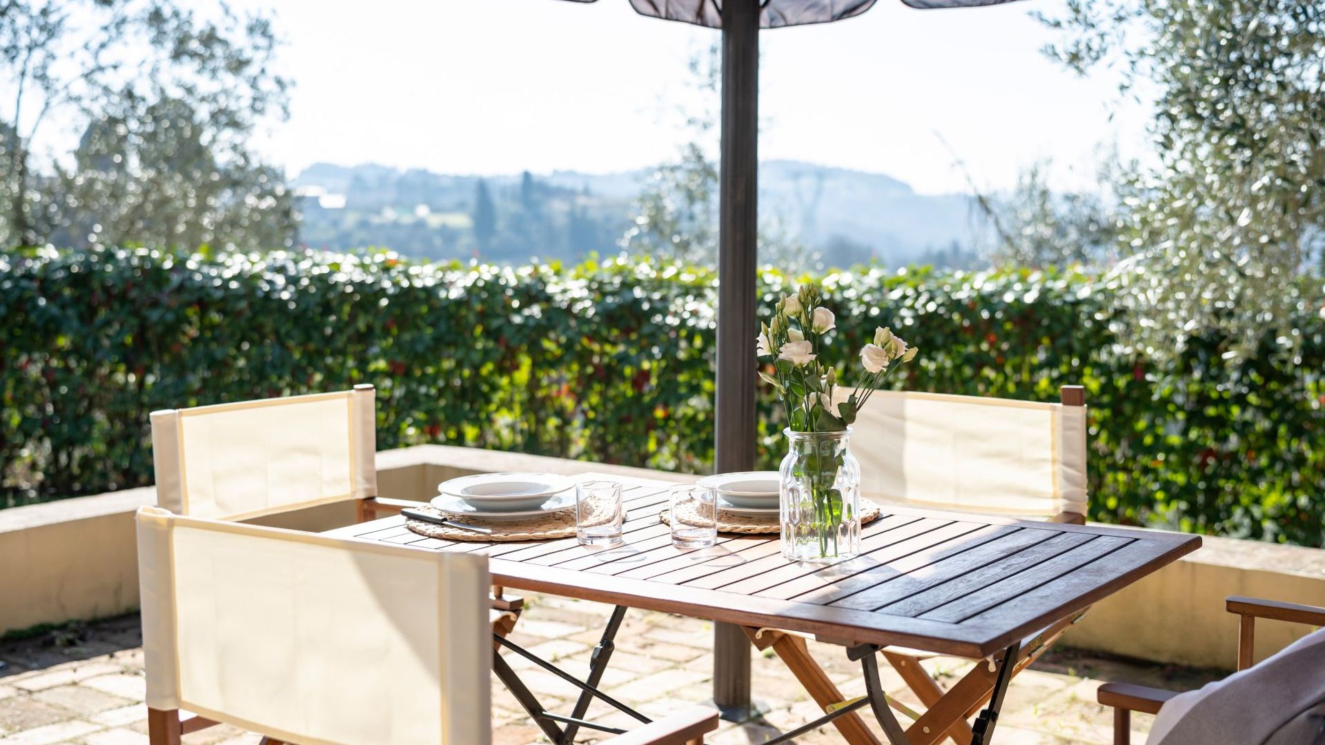 L'appartamento Il Forno dispone di un esclusivo resede privato ottenuto dal recupero dell'aia originale. Gli spazi esterni sono attrezzati con tavolo, sedie e ombrellone per i vostri pranzi e colazioni all'aperto. L'appartamento presenta all'esterno un antico forno in muratura tuttora funzionale. L'Agriturismo Casa Giani mette a disposizione degli ospiti anche un'ampia piscina con area relax per trascorrere lieti momenti nel verde. La struttura centrale dell'Agriturismo comprende inoltre un'ampia sala per eventi e degustazioni, mentre i più piccoli hanno un'area giochi dedicata, per giocare in sicurezza.