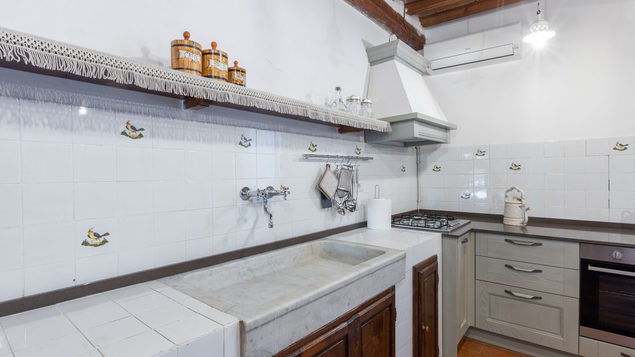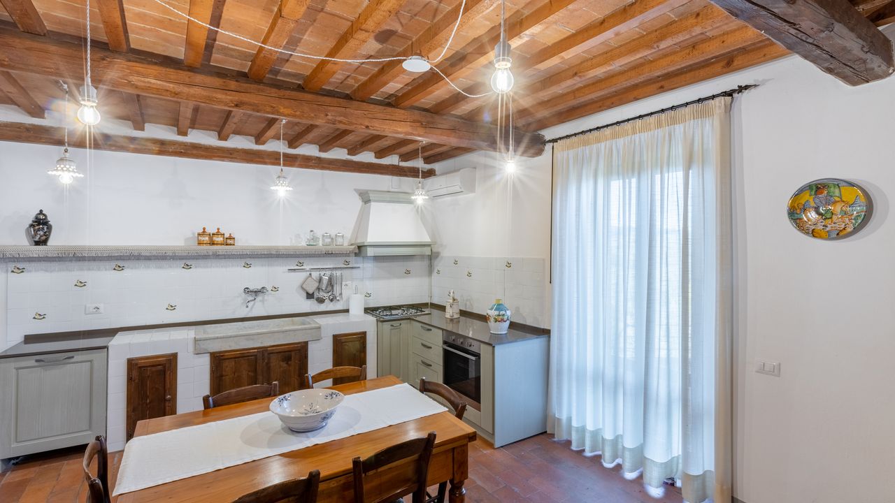 L'appartamento Il Pagliaio offre un alloggio elegante e confortevole per il vostro soggiorno sulle colline del Chianti. L'alloggio è interamente collocato al piano terra e pensato per accogliere fino a quattro persone. L'interno dell'appartamento è costituito da un ampio soggiorno con divani e poltrone, per offrire un completo relax nelle ore di lettura o durante la visione di un film. Una grande cucina accessoriata si distingue per l'ampio camino, caratteristico delle case rurali toscane. Allo stesso piano, due camere matrimoniali, una delle quali disponibile anche con letti doppi, sono pronte ad accogliervi in un'atmosfera di autentica serenità, con piacevoli affacci sul borgo esterno. L'alloggio dispone anche di un bagno privato, provvisto di tutti gli accessori e di una parure di asciugamani.