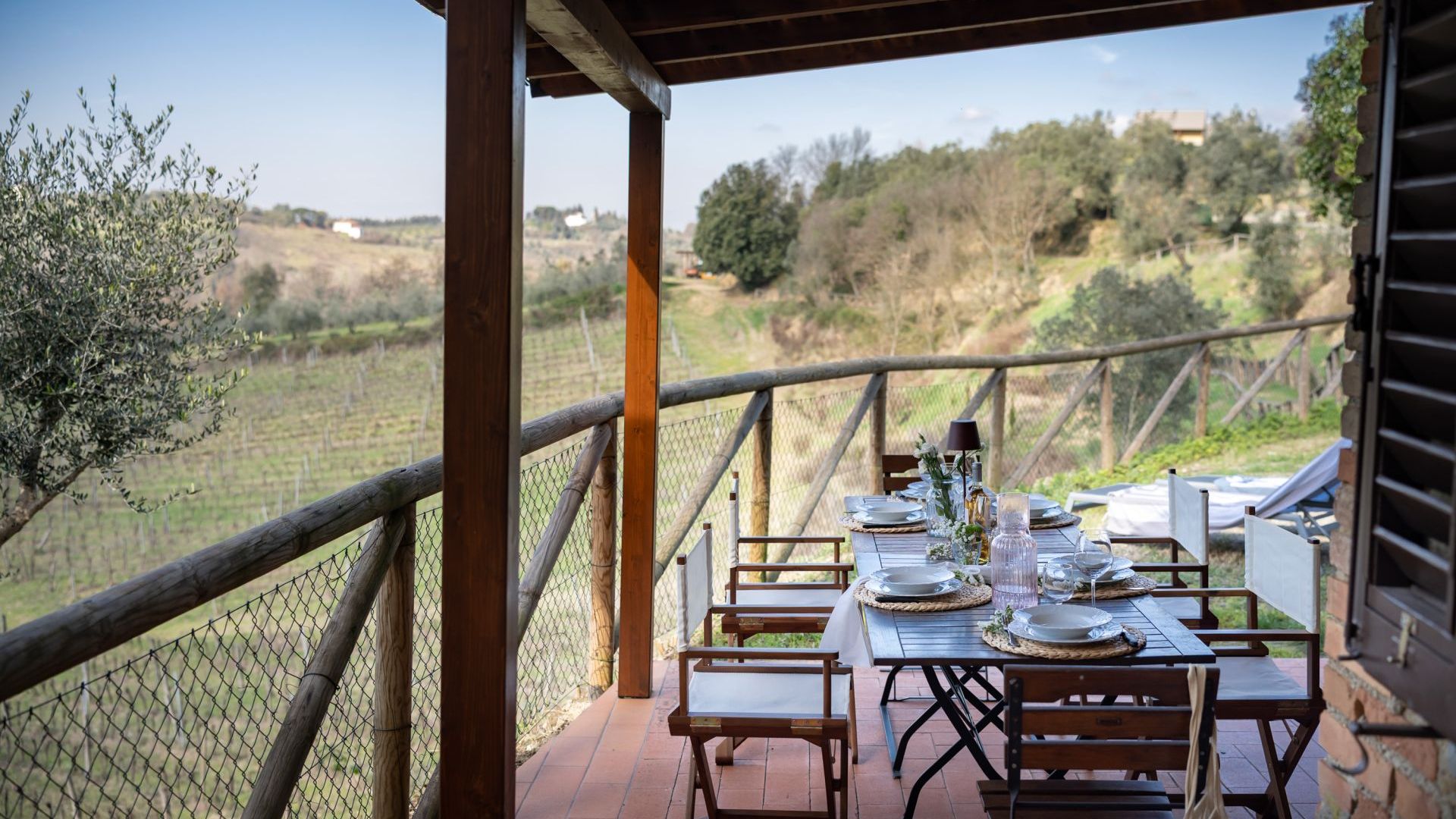 Gli spazi comuni dell’Agriturismo comprendono anche una sala per eventi e degustazioni con ampio loggiato all’aperto